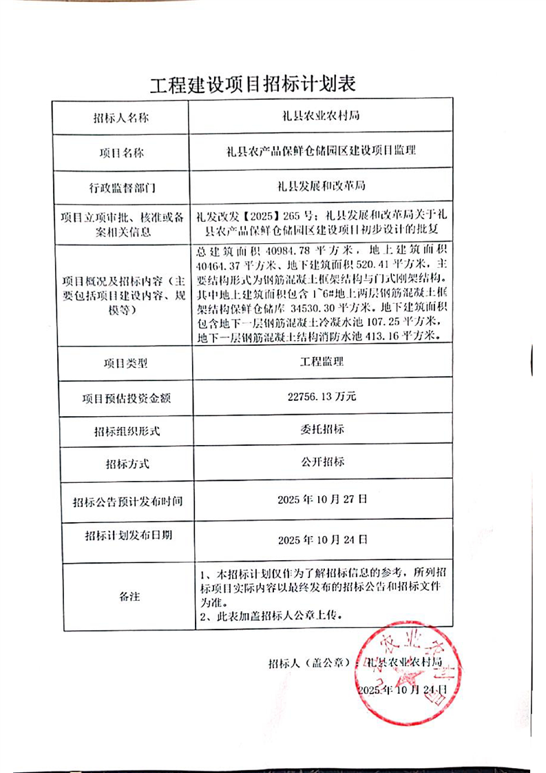 禮縣農(nóng)產(chǎn)品保鮮倉儲園區(qū)建設(shè)項(xiàng)目監(jiān)理