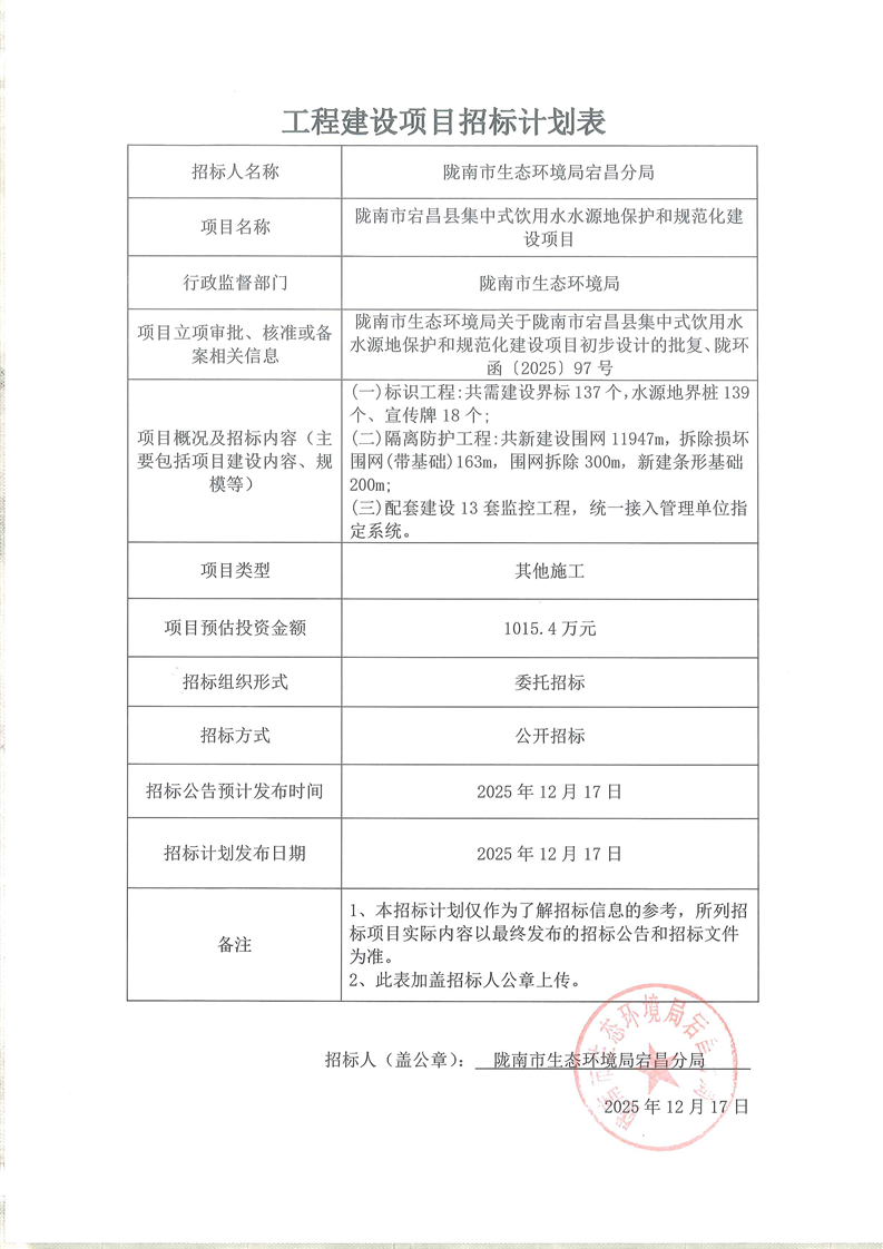 隴南市宕昌縣集中式飲用水水源地保護(hù)和規(guī)范化建設(shè)項(xiàng)目