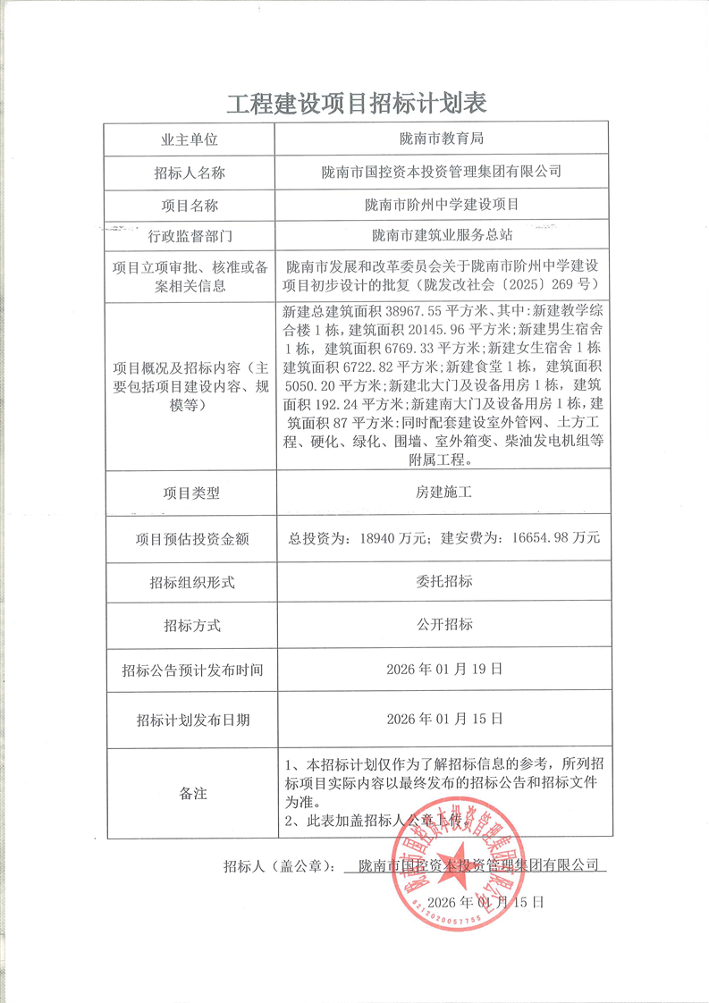 隴南市階州中學(xué)建設(shè)項(xiàng)目