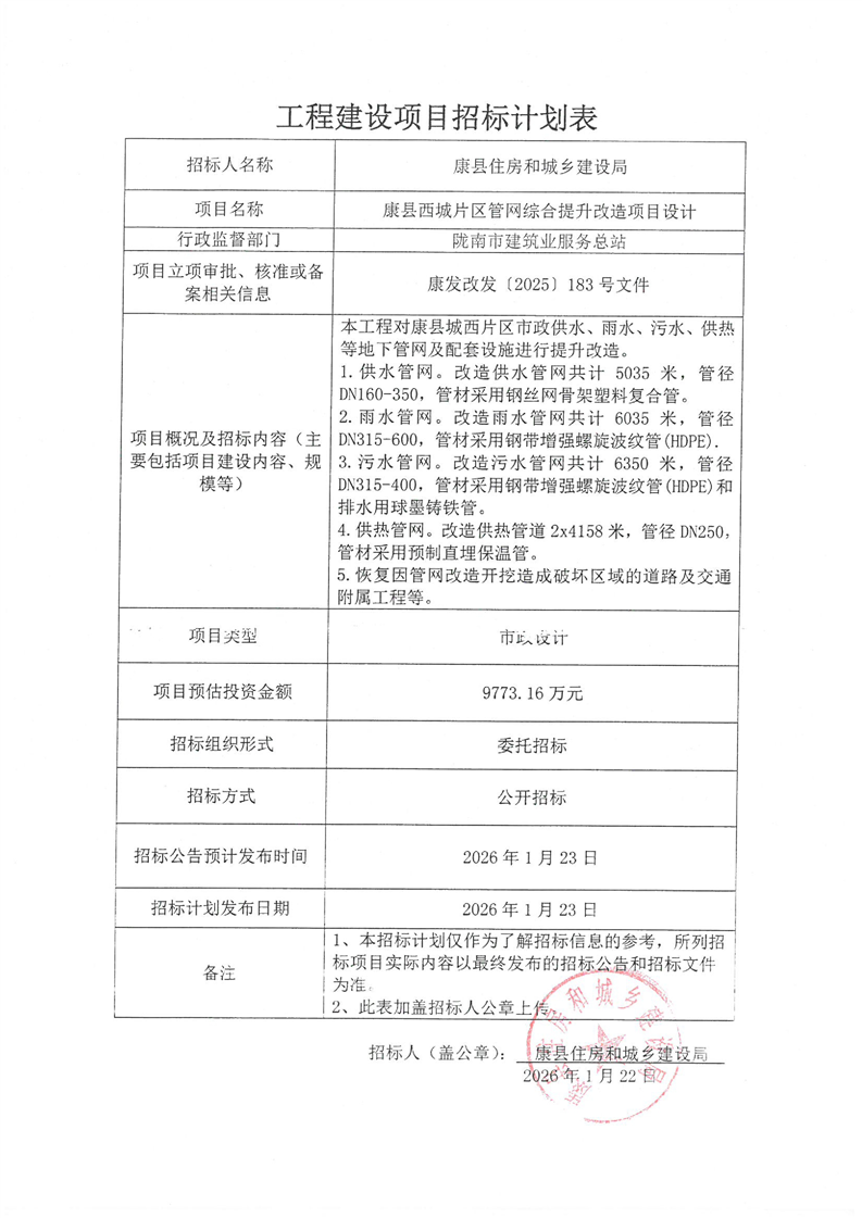 康縣西城片區(qū)管網(wǎng)綜合提升改造項目設(shè)計