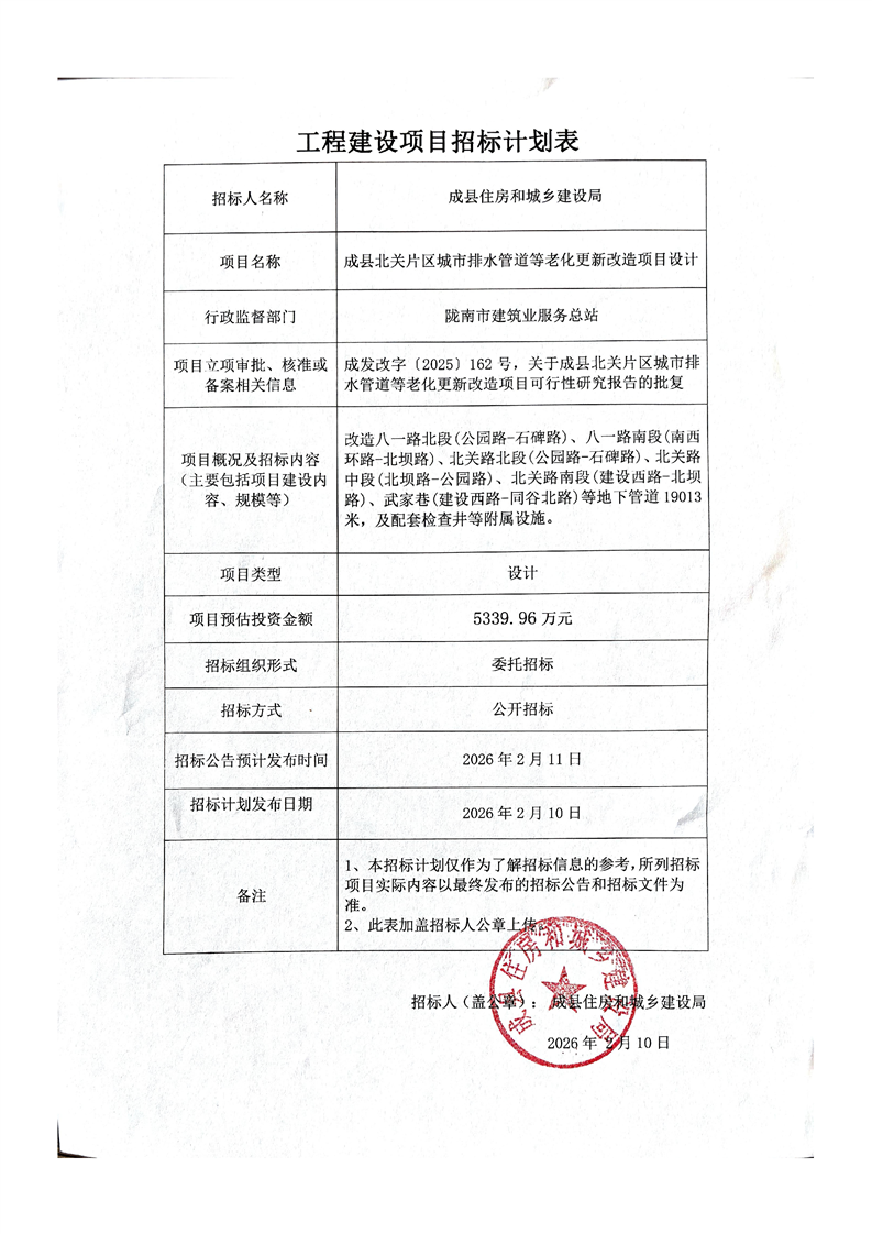 成縣北關(guān)片區(qū)城市排水管道等老化更新改造項(xiàng)目設(shè)計(jì)