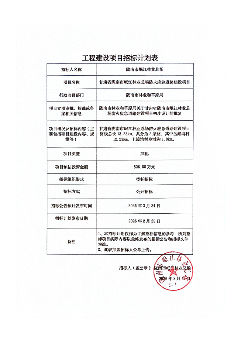甘肅省隴南市岷江林業(yè)總場(chǎng)防火應(yīng)急道路建設(shè)項(xiàng)目