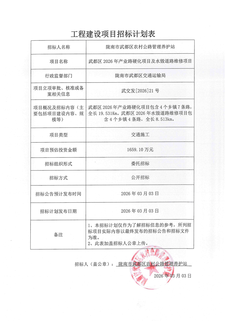武都區(qū)2026年產(chǎn)業(yè)路硬化項(xiàng)目及水毀道路維修項(xiàng)目