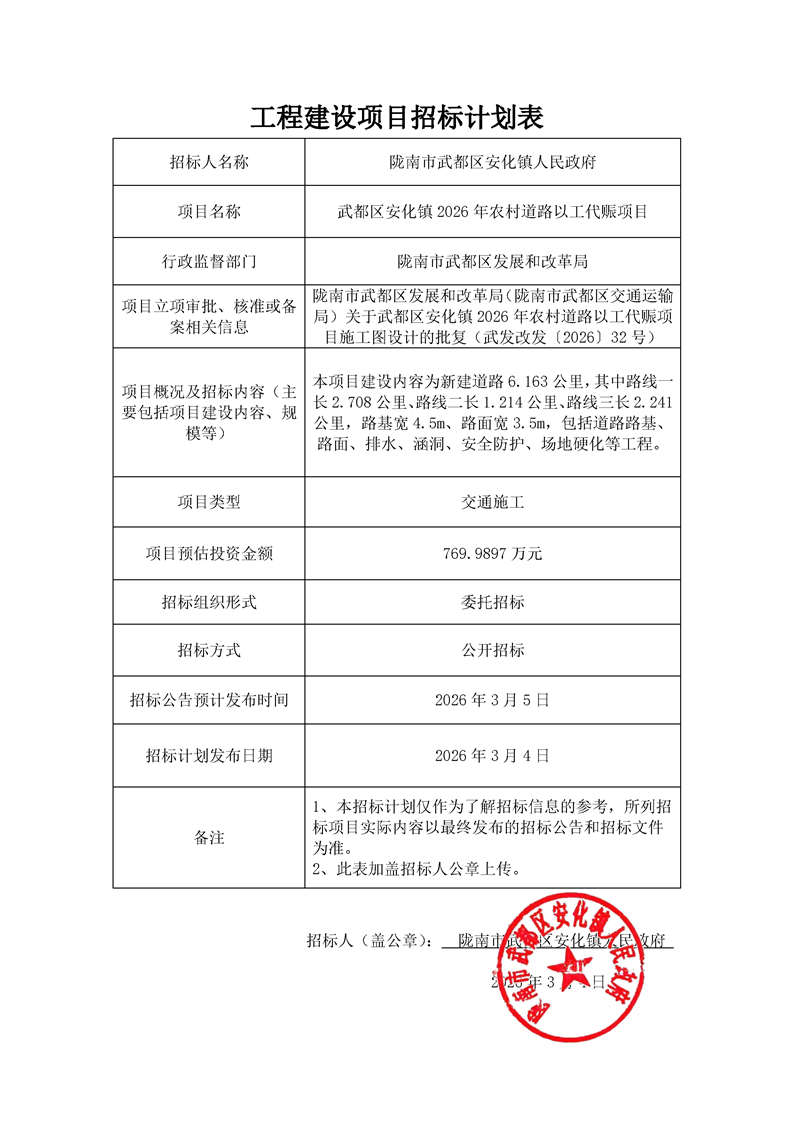 附件:施工招標(biāo)計(jì)劃表—武都區(qū)安化鎮(zhèn)2026年農(nóng)村道路以工代賑項(xiàng)目22.pdf