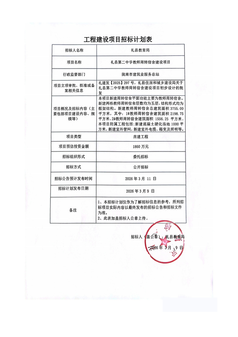 禮縣第二中學教師周轉(zhuǎn)宿舍建設項目