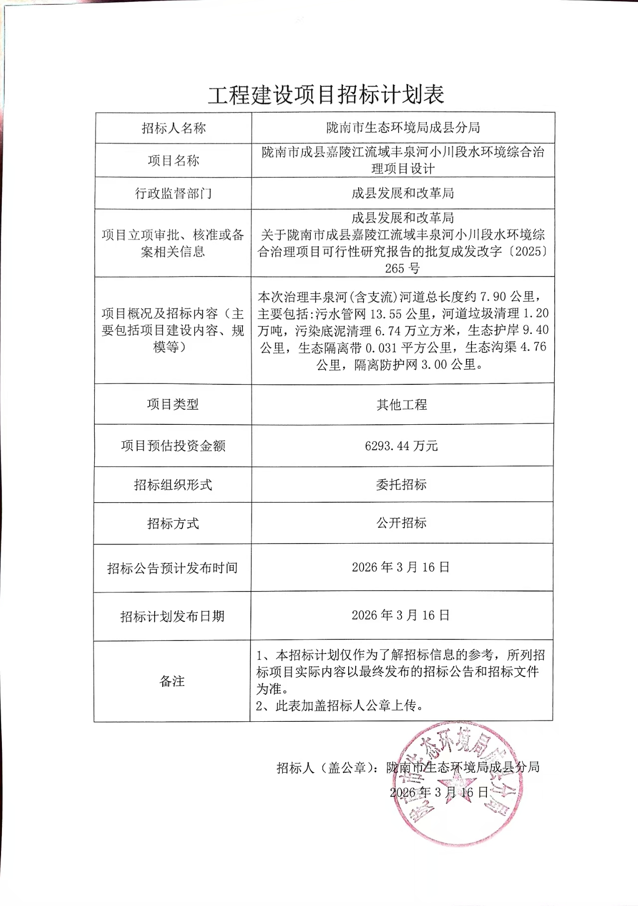 隴南市成縣嘉陵江流域豐泉河小川段水環(huán)境綜合治理項目設(shè)計